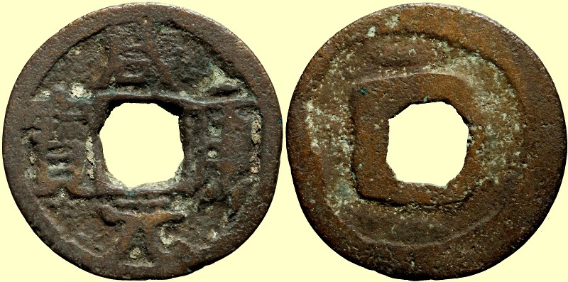 Herrscher: Wang Yan (919-925) Av: Xian Kang Yuan Bao 咸康元寶 Rv: schwach erkennbarer Halbmond oben Wert: 1 Jahr: 925 Material: AE, 3.01g, 23mm Literatur: Hartill 15.47, FD776