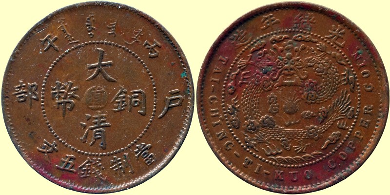 Zentrum: Da Qing Tong Bi 大清銅幣 Große Qing Kupfermünze