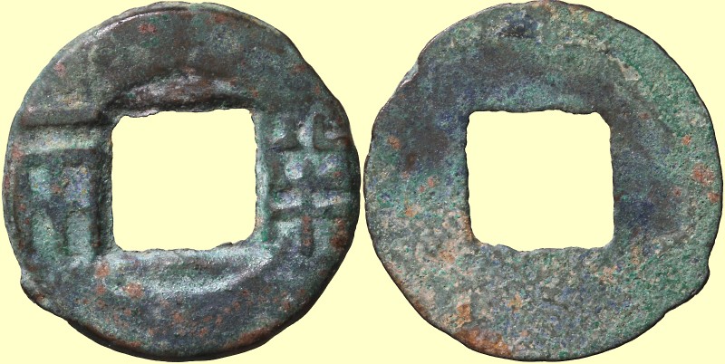 Av: Ban Liang ( Schlangenauge Ban Liang ) Rv: leer Wert: Jahr: 175-157 BC Material: AE, 2.92g, 23.55mm Literatur: Jen 990