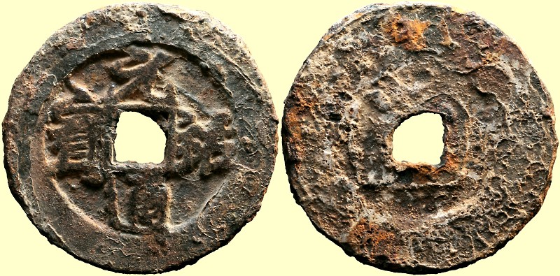 Herrscher: Zhezong, 哲宗 Av: Yuan You Tong Bao 元祐通寳 Running Script Rv: leer Wert: Jahr: 1086-1093 Material: Eisen, 14.25g, 34.2mm Literatur: Hartill 16.287, FD989, S581