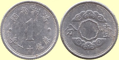 Rv: 壹角 (1 Jiao), Wappen von Manchoukuo, Wolken, Sonnenaufgang