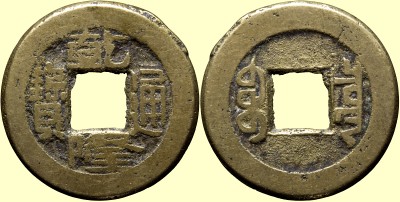 Die Münzen der Münzstätten des Finanzministeriums (Board of Revenue) in Beijing, tragen vorderseitig die Legende Qian Long Tong Bao 乾 隆 通 寶 und rückseitig die Mandschulegende Boo Chiowan.