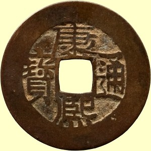 Kang Xi (* 4. Mai 1654; † 20. Dezember 1722) regierte China für 61 Jahre. Seine Herrschaft gilt als eine der bedeutensten Epochen Chinas. Die Münzen haben alle die Averslegende Kang Xi Tong Bao 康熈通寶, jedoch gibt es vielfältige Varianten der Rückseite.
