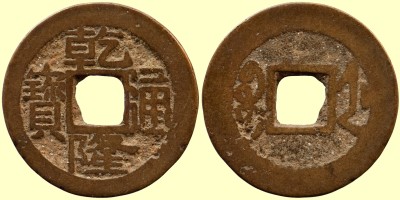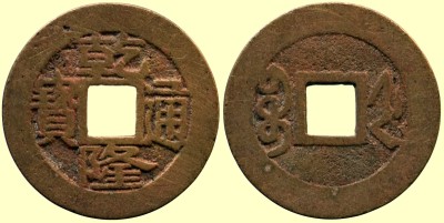 Qian Long war der vierte Kaiser der Qing-Dynastie. Seine Regentschaft begann 1735 und dauerte mehr als 60 Jahre. Alle Münzen des Qian Long haben die Averslegende Qian Long Tong Bao -乾隆通寶, die in verschiedenen kaligraphischen Varianten ausgeführt wurde. Auf den Rückseiten ist die Angabe der jeweiligen Münzstätte in Mandschuschrift.