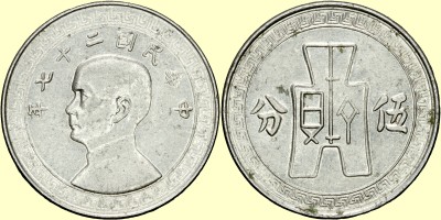 Rv: Spatengeld, 伍分 wu fēn (5 Fen)